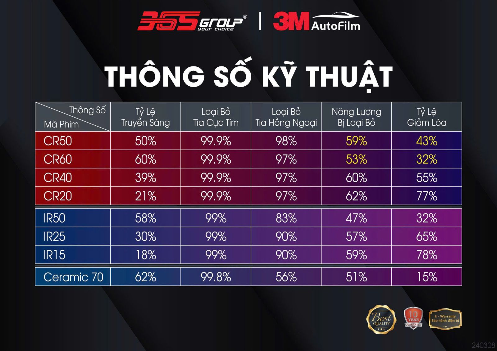 3M là một trong những công ty đầu tiên trên thế giới nghiên cứu và phát triển phim cách nhiệt. Với hơn 55 năm kinh nghiệm và hàng loạt bằng sáng chế, các sản phẩm của 3M không chỉ được tin dùng tại Mỹ mà còn được phân phối và chứng nhận tại hơn 80 quốc gia. Sự uy tín này được thể hiện qua các giấy chứng nhận, kiểm định quốc tế, đảm bảo người dùng luôn nhận được sản phẩm chất lượng tốt nhất.